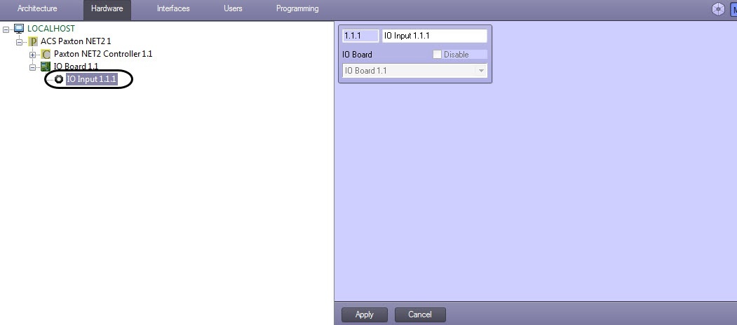 The Paxton IO Input is not configured on the IO Input object settings panel in any way.