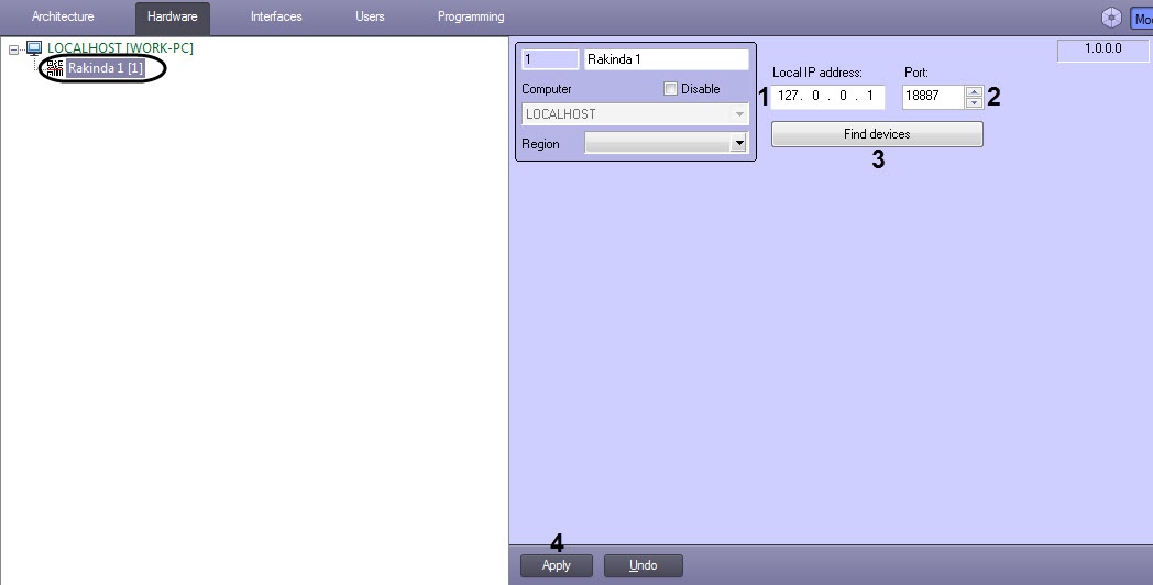1. Go to the settings panel of the Rakinda object, which is created on the basis of the Computer object on the Hardware tab of the System Settings dialog box.