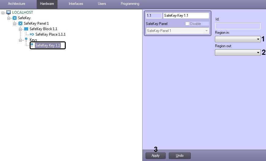 - From the Region in drop-down list (1) select the Partition corresponding to the area, which is entered using this key.