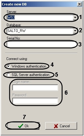 1. Set the SQL server authentication checkbox (5).
