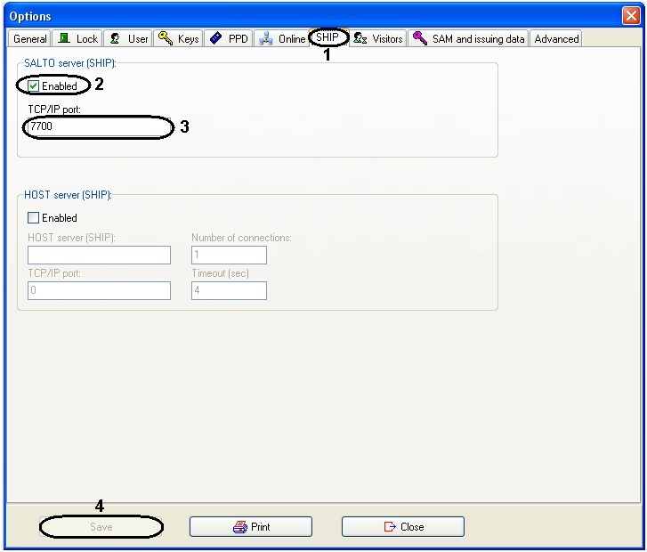 - In the TCP/IP port field, enter the port number for data transfer via SHIP (3).