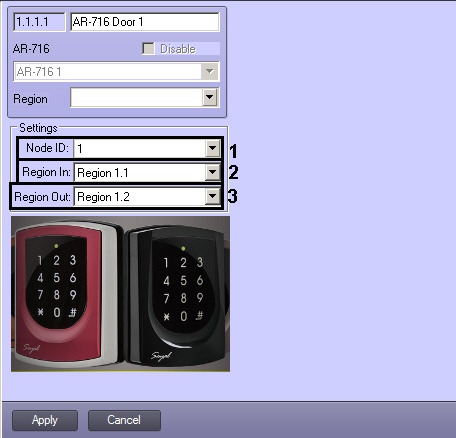 2. From the Node ID drop-down list select the ID of AR-716 Door object (1).