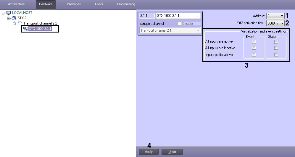 1. Go to the settings panel of the STX-1000 object, which is created on the basis of the Transport channel object.