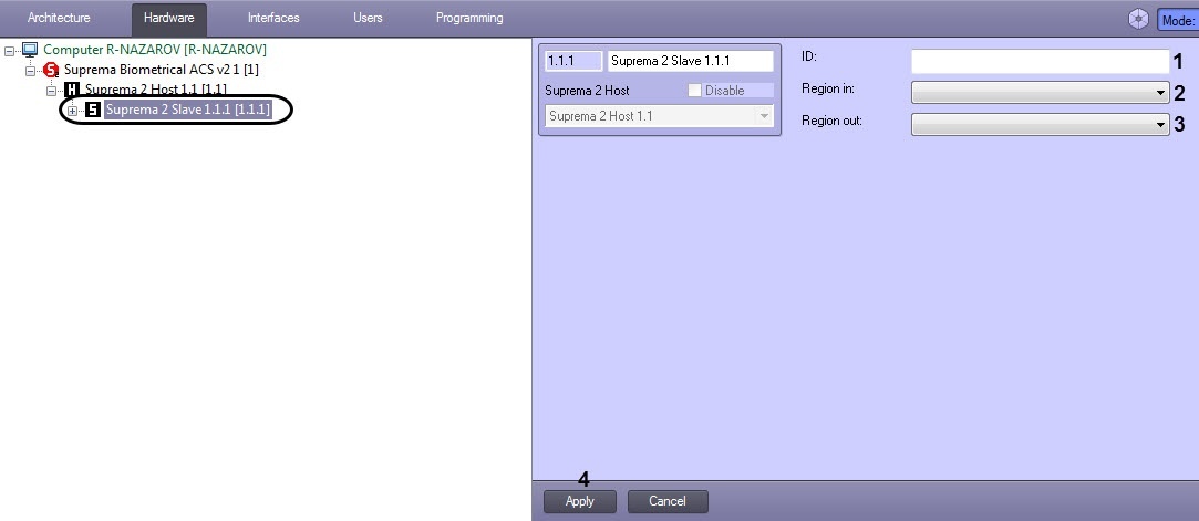 - Go to the Suprema 2 Slave object settings panel. The object is created based on the Suprema 2 Host object.