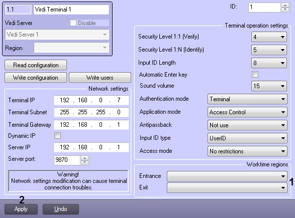 1. From the Entrance and Exit drop-down lists (1), select the regions located on the entrance and exit sides of the door, respectively.