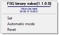 Control FSG binary value is performed using the functional menu of the FSG binary value object.