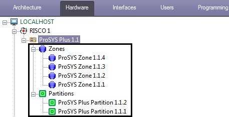 2. Go to the settings panel of the ProSYS Plus object, which is created on the basis of the RISCO object.