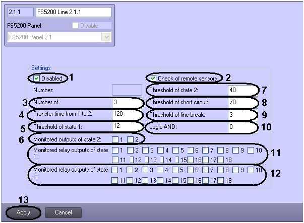 - In the Threshold of state 1: field set threshold valuation of fire condition stage 1 in milliamperes (5).