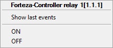 Forteza-Controller relay is controlled in the Map interactive box using the function menu of the Forteza-Controller relay object.