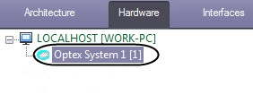 To activate the Optex integration module, create an Optex object based on the Computer object located on the Hardware tab of the Settings dialog window.