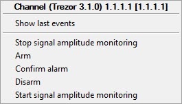 Operating the TREZOR-B04 and TREZOR-R channel is performed in the Map interactive window using the Channel (Trezor) object function menu.