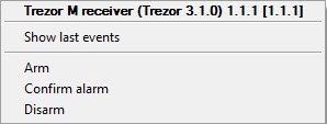 Operating the TREZOR-M receiver is performed in the Map interactive window using the Trezor M receiver (Trezor) object function menu.