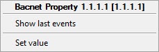 The BACnet channel properties are managed in the Map interactive window using the Bacnet Property object functional menu: