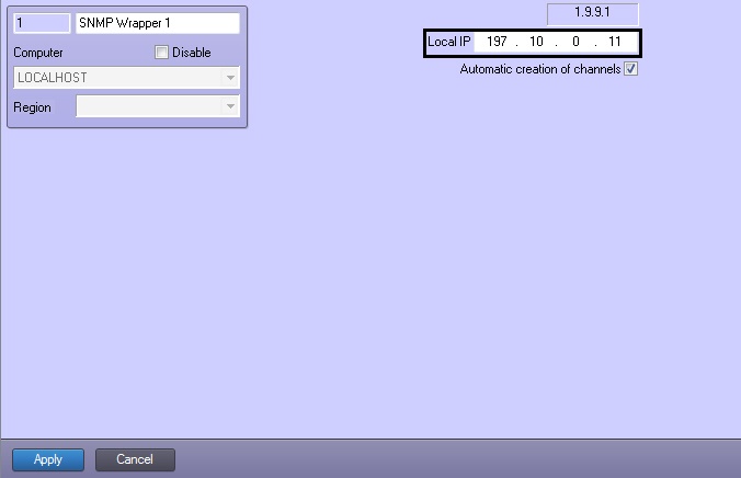 On the settings panel of the SNMP Wrapper object enter the local IP-address of the Intellect Server and click the Apply button.