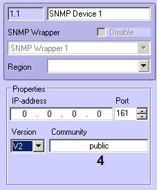 Select the version of SNMP protocol supported by the connected device from the Version drop-down list (3).