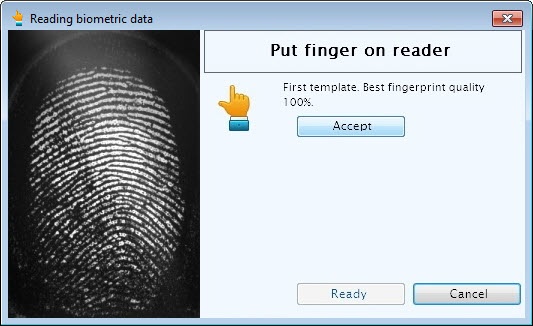 1. Go to adding biometric data in the Access Manager window (see Adding biometric parameters).