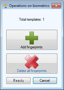 3. The Operations on biometrics dialog box will open. To add a new fingerprint, click the Add fingerprints button.