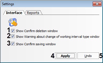 3. If it is necessary to display a warning window about changing the type of working interval, set the corresponding check box (2).