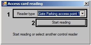 Click the Start reading button (2). The Access card reading window will be as follows: