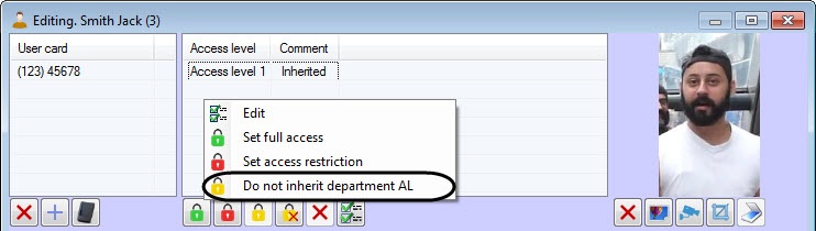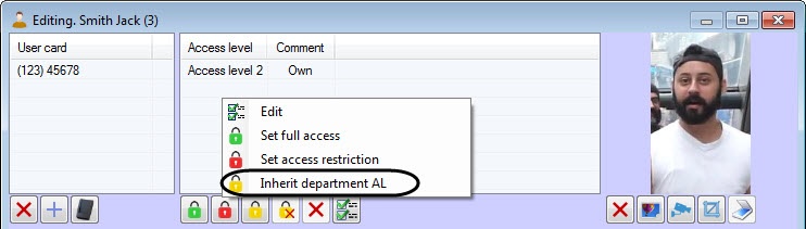 - To restore the inheritance of department access levels, select the Inherit department AL item in the functional menu.