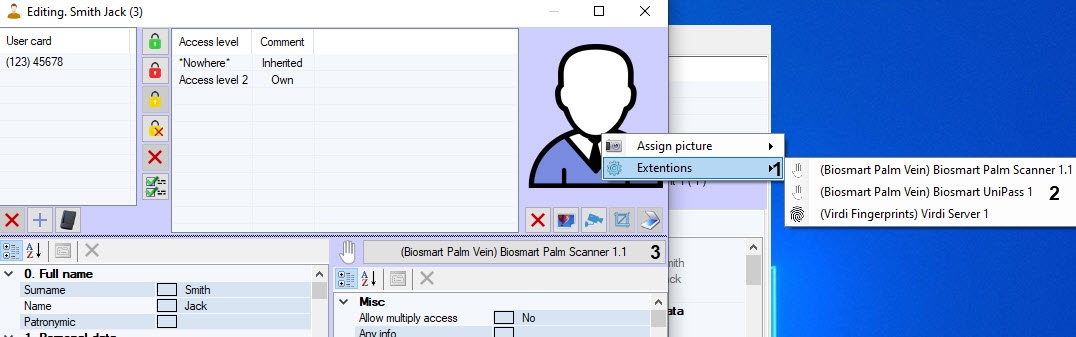 As a result, the button with the selected biometric reader (3) will be added to the area under the user's photo.