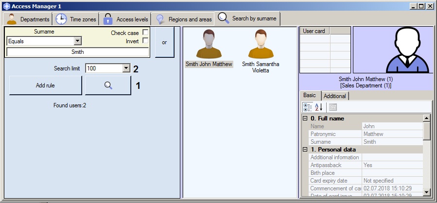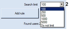 Number of users in the search result list can be limited. To change the limit, select the required number of users displayed from the Search limit drop-down list (2).
