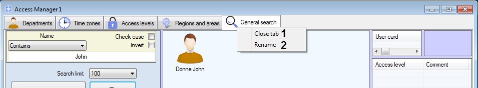 To close a tab after search completion click the right mouse button on the tab name and select the Close tab (1) item in the opened functional menu.
