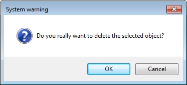 - The confirmation message will display. To confirm deleting of the selected user click the OK button. To cancel deleting click the Cancel button.