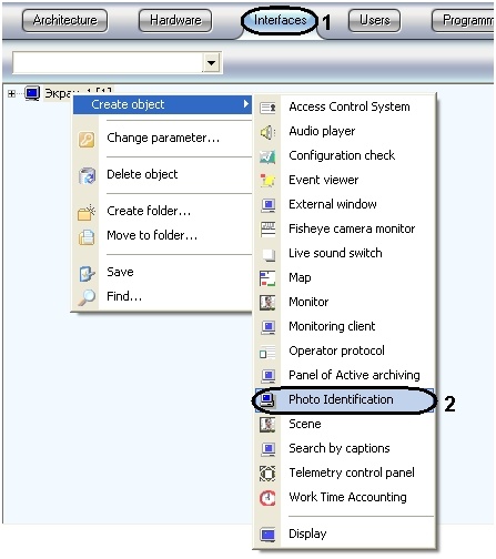 - Right-click the chosen Screen object. A context menu appears. In the menu, go to Create object -> Photoidentification (2).