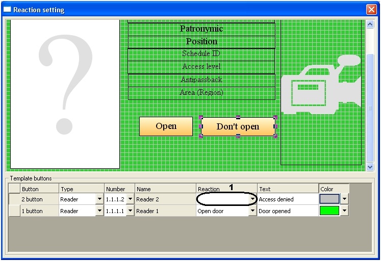 2. Configure the Photo ID window's events and actions.   Select the Invalid access level event and the Open door and Do not open door actions.