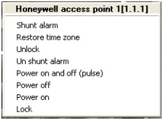 To manage a Honeywell access point, go to the Map window and open the menu of the relevant Honeywell Access Point object.
