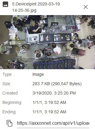 If you configure email notifications via AxxonNet (see Email notifier), and a frame or a video is attached to an email, you can use AxxonNet interface to view exported files.