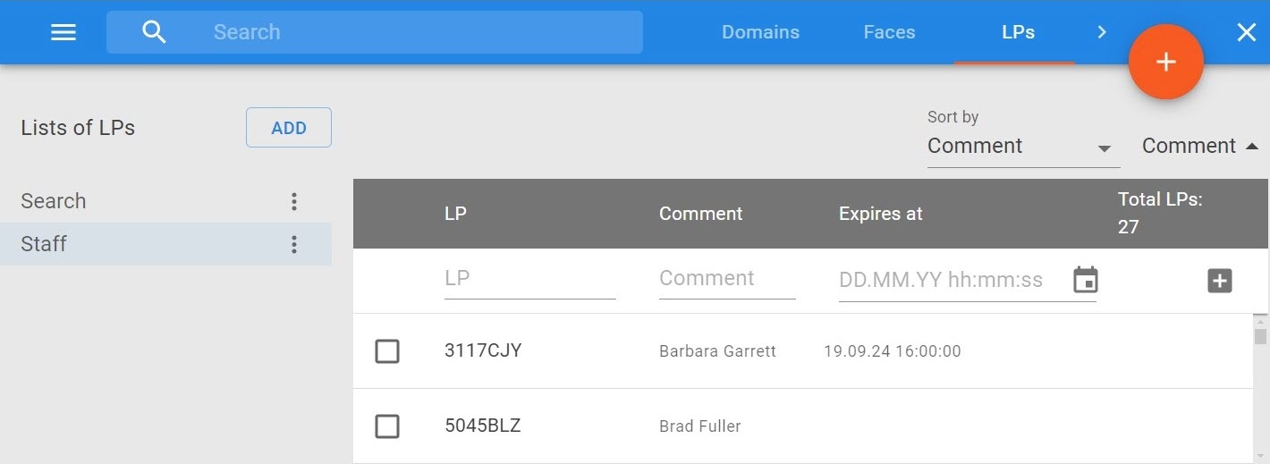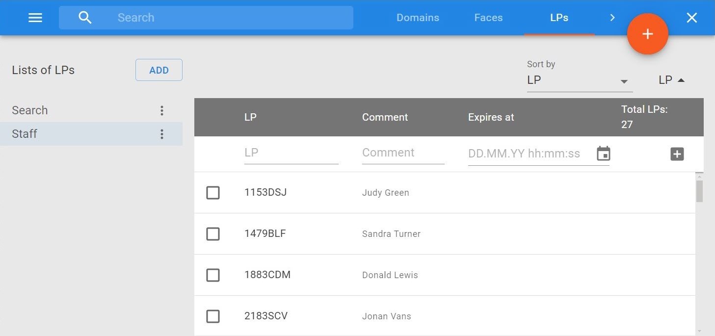 - A license plate is deleted from a list at the set time if you specified the data and time in the Expires at field.