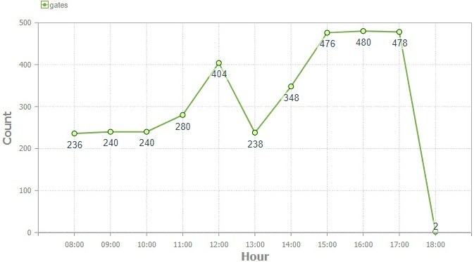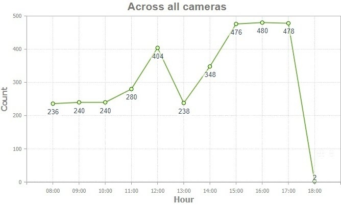- Chart of the total number of violations of the social distancing across all cameras by day within the specified time slot.