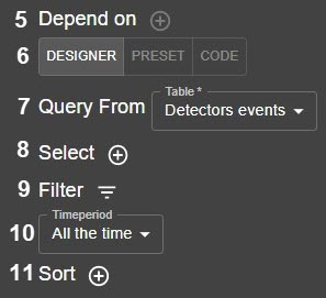 - If necessary, select one or more widgets on which this widget will depend (Depend on, 5). When you select any value on the widget (chart point, table field), the data on all related widgets will be updated according to this filter.
