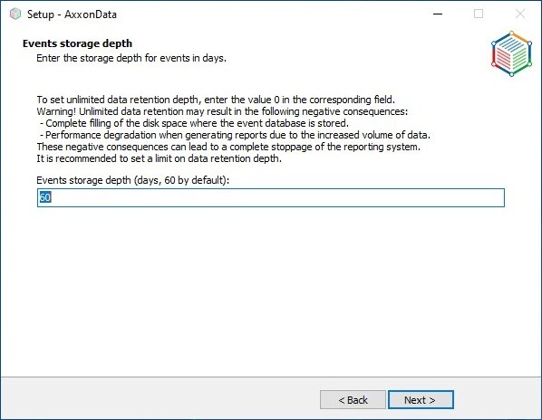 - Enter the depth of event storage in days. By default, it is 60 days: