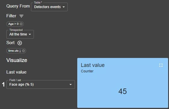 2. Select the value of the detection tool event to be displayed in the widget (1).