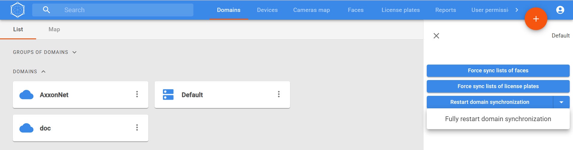 After you click the required button, wait for the synchronization to complete. Once the synchronization is complete, the domain or lists of faces and license plates are synchronized.
