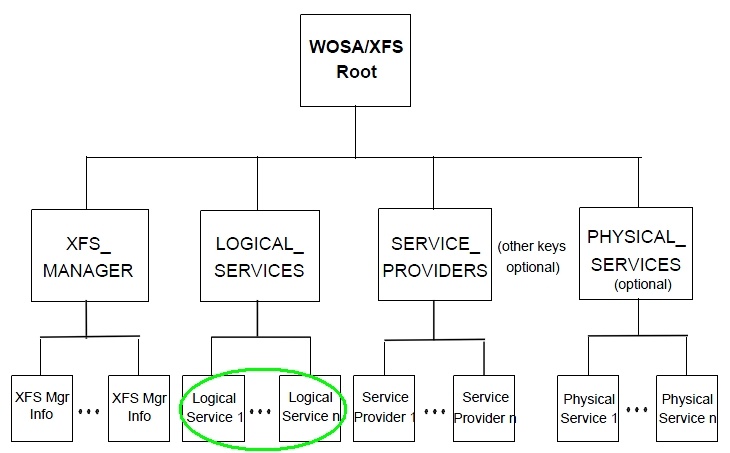 This setting can assume different values for different ATM types. In accordance with the XFS specification, this value is stored in the system registry. For earlier versions of XFS, this value is stored in the registry key HKEY_CLASSES_ROOT\WOSA/XFS_ROOT\LOGICAL_SERVICES\Logical Service.
