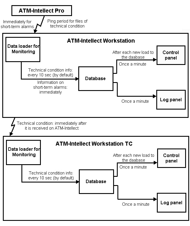 Information about short-term alarms comes to the ATM Intellect Workstation immediately after they have appeared at the ATM Intellect Pro.