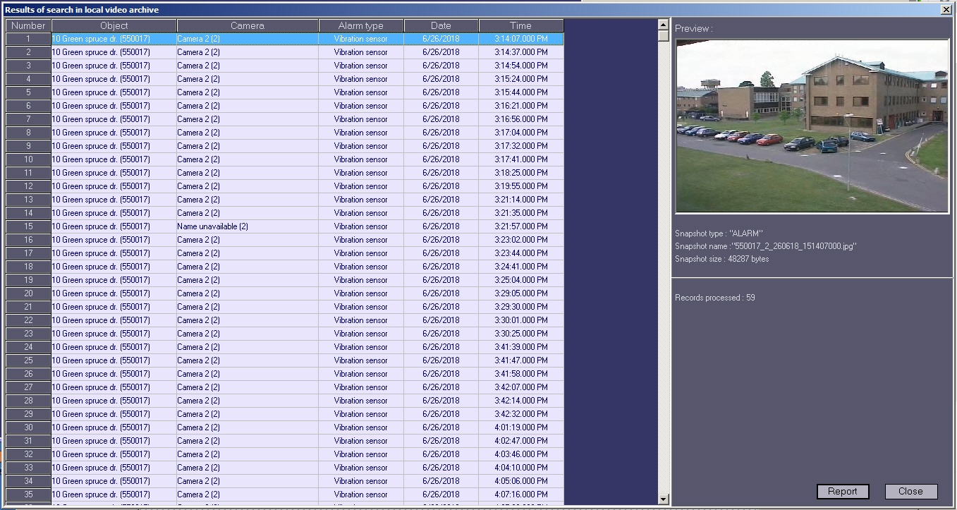 - snapshots – alarms. These are snapshots after an alarm sensor was triggered at the object ("Vibration sensor", "Lock open sensor", etc.).