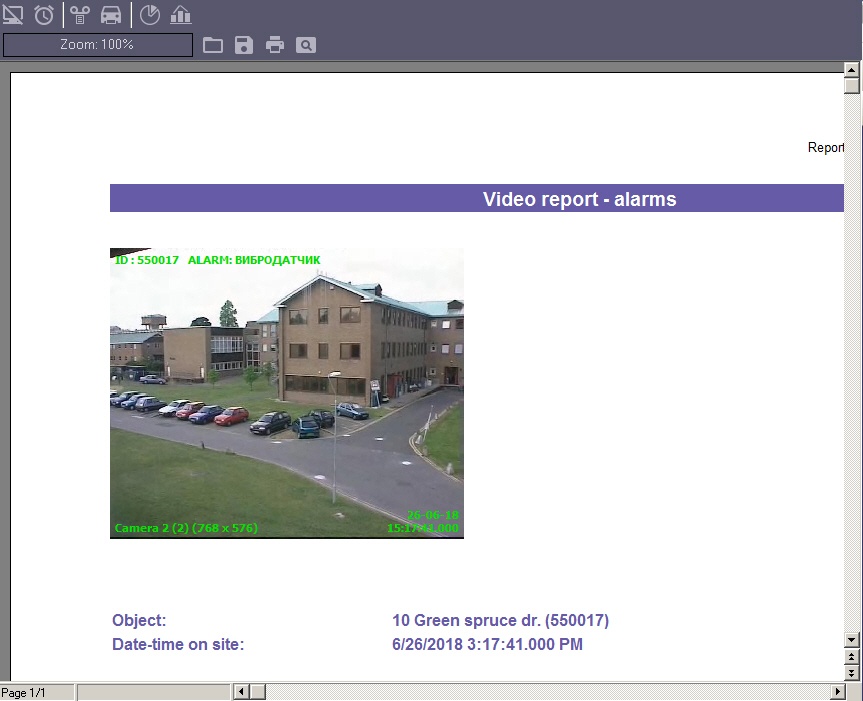 - video frames – alarms. These are video frames obtained after an alarm sensor is triggered at the object.