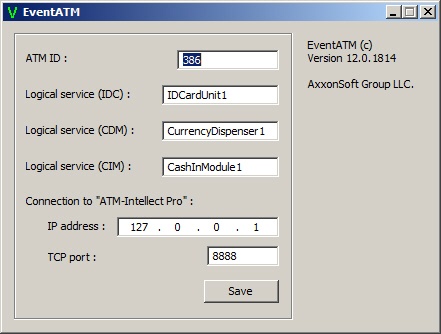 Double-clicking the icon opens a dialog box with settings for ATM Event Capture.