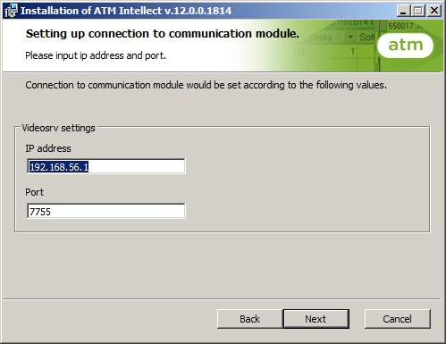 Specify IP-address and port for connection to ATM-Intellect Workstation communication module videosrv.