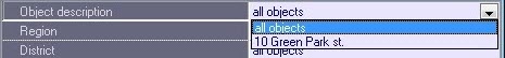 2. Region, District and City in which the objects are located. This information is configured on the Control panel - see Editing reference information. If a specific object is selected (see step 1), then these fields are hidden in the report settings window.