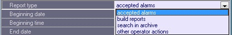 1. accepted alarms - displays the information about when and which user accepted an alarm or group of alarms, and the specified comments.