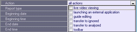 4. other operator actions - displays the information about when and which user has performed any other actions (clicking buttons, working with cameras, archives, etc.). The Action option appears. This parameter specifies other operator actions.