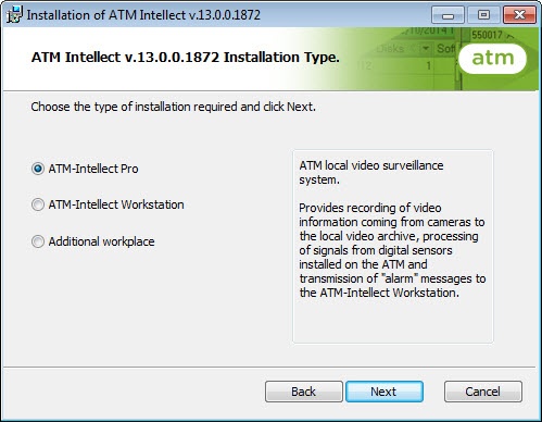 To install ATM Intellect software in the ATM-Intellect Pro configuration, do the following: