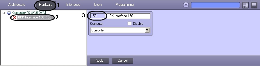 - Create the IIDK Interface object based on the Computer object (2). Set the ID number of the IIDK Interface object (3).