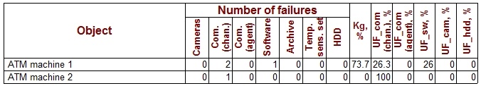The unavailability factors of an object for these malfunctions in the example here are calculated as follows: